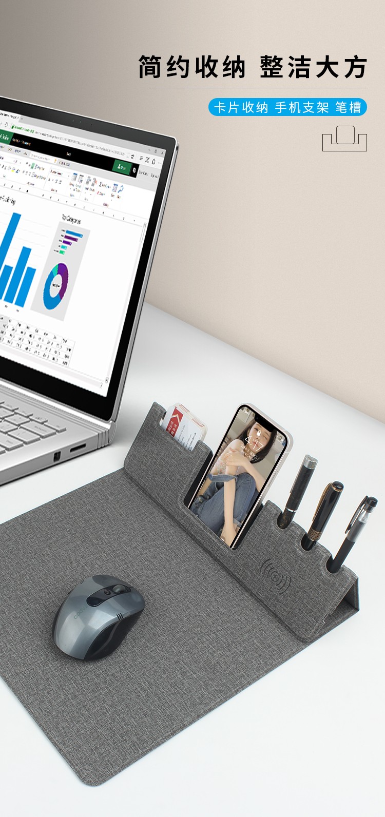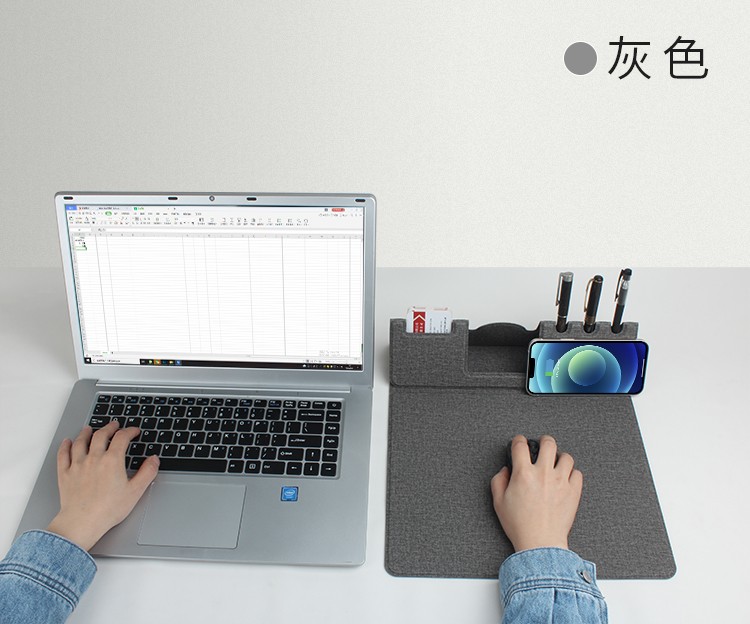 支架款無(wú)線充鼠標(biāo)墊,手機(jī)一放,立即充電,給手機(jī)提供支架,布面,表面細(xì)膩、平整、操作穩(wěn)定,底部淺絨,防滑穩(wěn)固