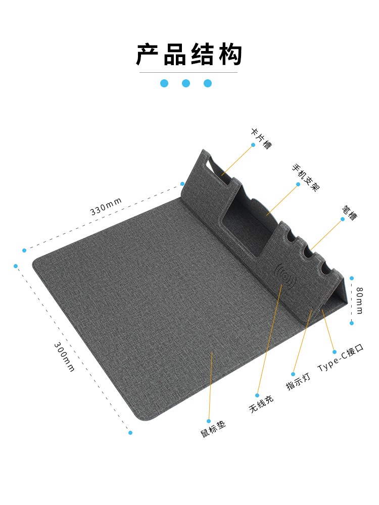 折疊支架款無(wú)線充電鼠標(biāo)墊可定制 布紋超薄無(wú)線充鼠標(biāo)墊可印LOGO