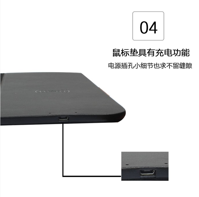 無(wú)線充鼠標(biāo)墊,手機(jī)一放,立即充電,織物面料編織,表面細(xì)膩、平整、操作穩(wěn)定,帶燈光切換按鍵,輕輕一按,燈光可自由切換,加厚橡膠底部,穩(wěn)固防滑