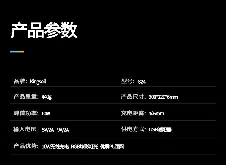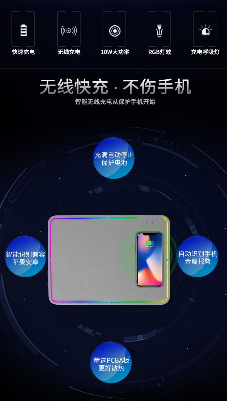 方形發(fā)光無線充鼠標墊