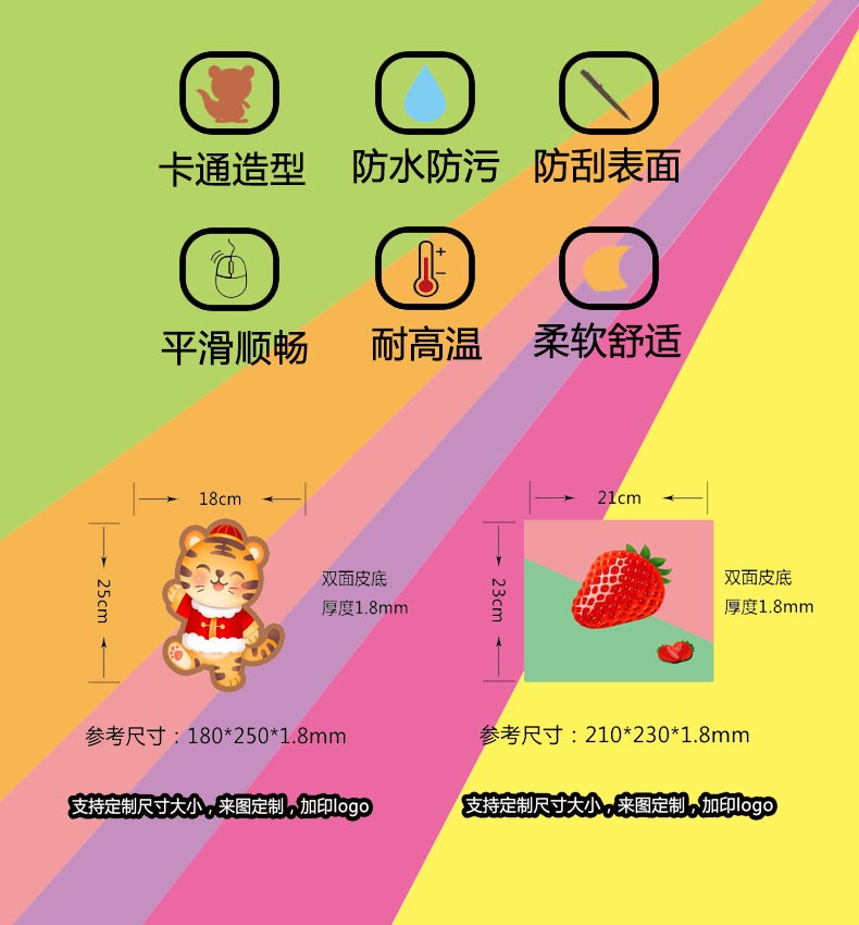 雙面皮革鼠標墊、防水耐臟、防滑穩固、卡通造型,支持尺寸定制,來圖定制