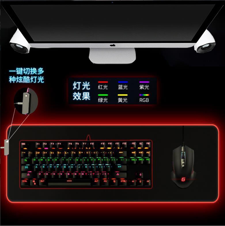 炫彩RGB游戲鼠標墊,織物面料編織,表面細膩、平整、操作穩定,帶燈光切換按鍵,輕輕一按,燈光可自由切換,加厚橡膠底部,穩固防滑